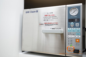 可能な限りディスポ(使い捨て)の器具を使用し、すべての器具の滅菌・消毒を徹底しております。滅菌後、紫外線滅菌庫にて保管しています。